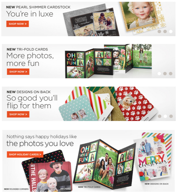 Some playful headlines I wrote for Shutterfly homepage banners and other site placements.